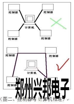 控制器GND 485- 485+分別對應(yīng)連接485轉(zhuǎn)換器GND TD(A) TD(B),通訊線路采用串聯(lián)掛接式連接,請勿采用星型連接或者局部星型連接(如圖二)。如果線路過長和設(shè)備過多,請在最后一臺設(shè)備上增加終端電阻(有跳線加載)總線最多可掛接128臺控制器。