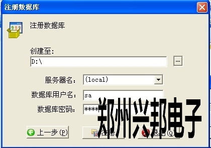 四、選擇存放數(shù)據(jù)庫的路徑后,選擇本地服務(wù)器并且輸入數(shù)據(jù)庫的用戶名和密碼。點(diǎn)擊‘注冊’出現(xiàn)如圖五所示: