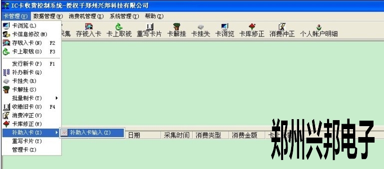 1. 485售飯機(jī)軟件打開(kāi)后,點(diǎn)一下卡管理--補(bǔ)助入卡--補(bǔ)助入卡輸入,添加上人員及補(bǔ)助信息后,關(guān)閉此畫(huà)面,如下圖所示。
