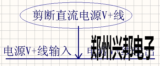 將一根直流電V+線(xiàn)剪斷,一側(cè)為直流電V+的輸入,另一側(cè)為直流電V+的輸出;如下圖1-3所示