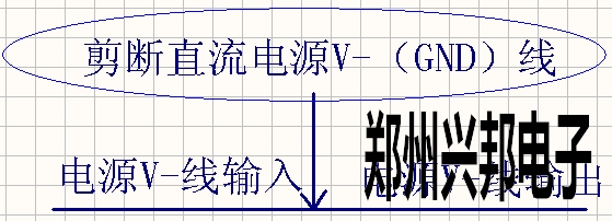 將一根直流電V-線(xiàn)剪斷,一側(cè)為直流電V-的輸入,另一側(cè)為直流電V-的輸出;如下圖1-4所示
