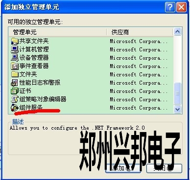 把光標點一下組件服務(wù),點添加,然后關(guān)閉,如下圖