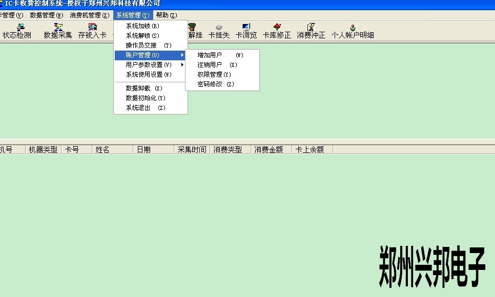 1. 打開485售飯機軟件--系統(tǒng)管理--賬戶管理--增加用戶,可以輸入賬戶、姓名、密碼,然后點添加后關閉此對話框即可。