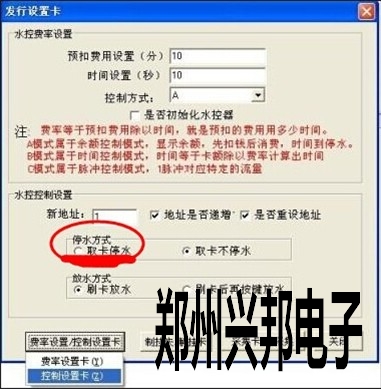2、水控機(jī)費(fèi)率過大,將水控機(jī)費(fèi)率換算成最小單位,或者是將水控機(jī)停水方式改為拔卡停水即可。