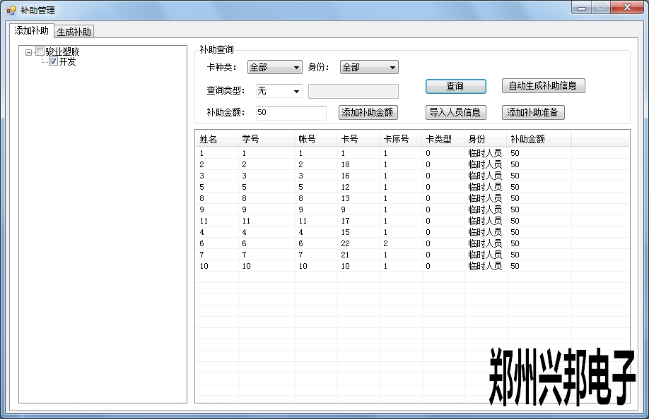 一卡通綜合管理系統(tǒng)發(fā)放補(bǔ)助的功能是可以生成企業(yè)補(bǔ)助錢(qián)包,定期發(fā)放補(bǔ)助、補(bǔ)助清零。在補(bǔ)助管理中進(jìn)行添加補(bǔ)助和生成補(bǔ)助。首先進(jìn)行添加補(bǔ)助,勾選左側(cè)欄部門(mén),可以選擇限定條件卡類型和身份以及查詢類型(學(xué)號(hào)、姓名、卡號(hào))進(jìn)行查詢需要添加補(bǔ)助的人員信息,填寫(xiě)補(bǔ)助金額,對(duì)所選人員添加補(bǔ)助金額,然后添加補(bǔ)助準(zhǔn)備,即可以在生成補(bǔ)助中看到。其中自動(dòng)生成補(bǔ)助信息是對(duì)查詢到的人員進(jìn)行默認(rèn)為0的補(bǔ)助金額,然后可以添加補(bǔ)助準(zhǔn)備。