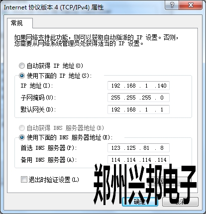 1、支持無(wú)線售飯機(jī)、水控等產(chǎn)品均采用的內(nèi)置TCP模塊。出廠設(shè)置均是1網(wǎng)段IP即(192.168.1.···),所用電腦也要設(shè)置到1網(wǎng)段才能正常搜索到該模塊。電腦IP設(shè)置如下圖: