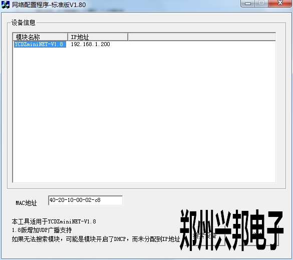 借鑒修改方法,取模塊IP地址的最后一空數(shù)字轉(zhuǎn)化為16進(jìn)制數(shù)作為模塊MAC地址的最后一位。比如模塊IP地址為192.168.1.250我們就取200,變?yōu)椋保哆M(jìn)制數(shù)為fa,那么該模塊就可以設(shè)置為40-20-10-00-02-fa