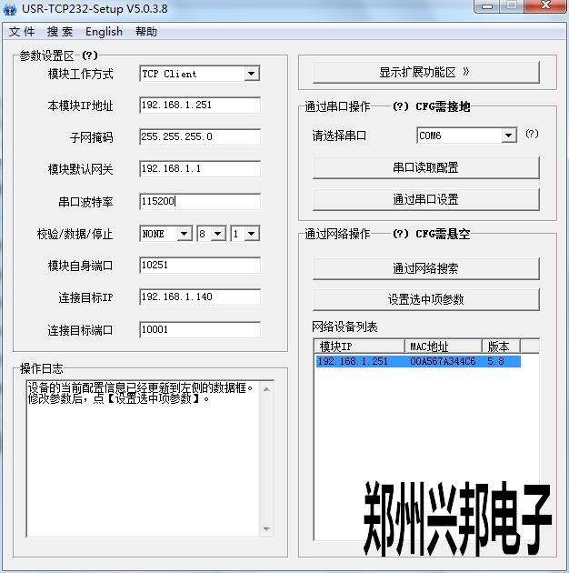 5、模塊自身端口取所填本地ip地址的最后一空的數(shù)字,比如所填IP為192.168.1.251那么該端口就是10251