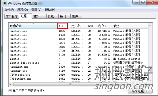 或者是我們打開任務(wù)管理器,切換到進(jìn)程選項卡,在PID一列查看2720對應(yīng)的進(jìn)程是誰,如果看不到PID這一列,如下圖: