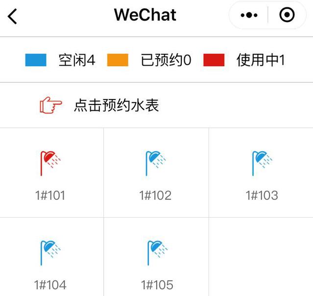 第二步:點擊“預(yù)約”功能,選擇想要使用的水控器進(jìn)行預(yù)約,獲取預(yù)約碼及時間。
